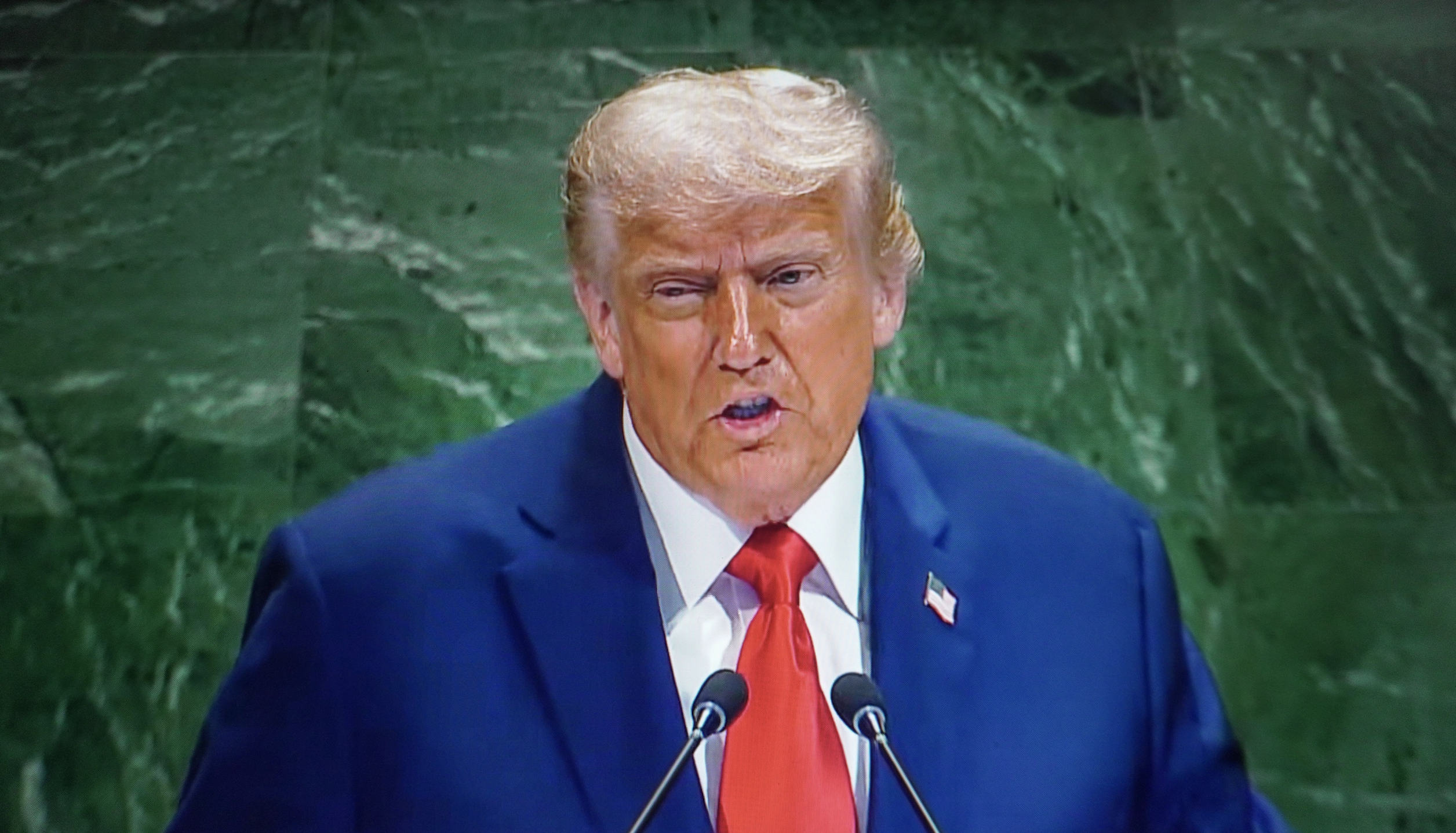 Donald Trump at the United Nations General Assembly in September, telling representatives that their countries “are going to hell”/Shutterstock